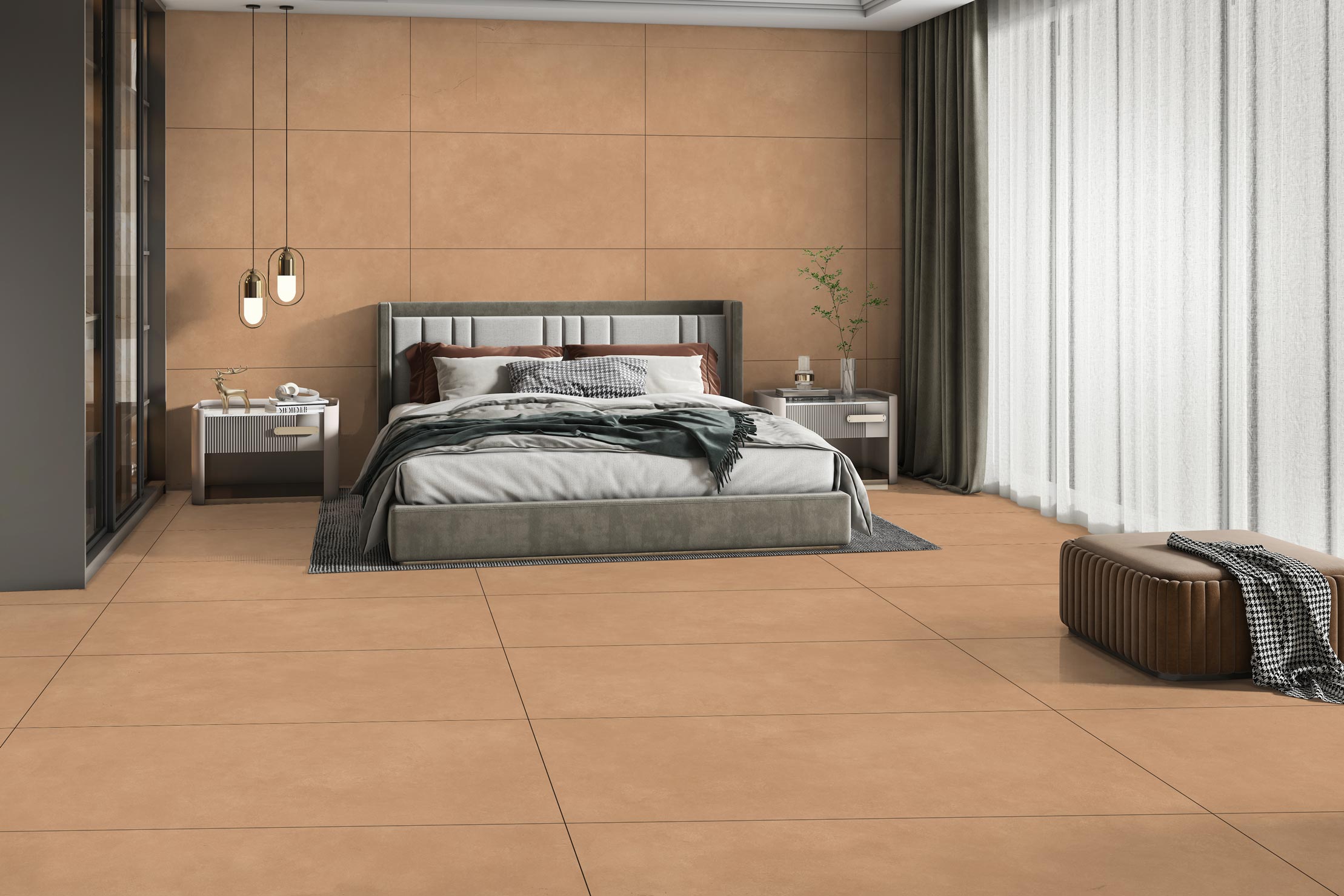 Use light grey or beige bedroom tiles to build a peaceful and cosy retreat.
