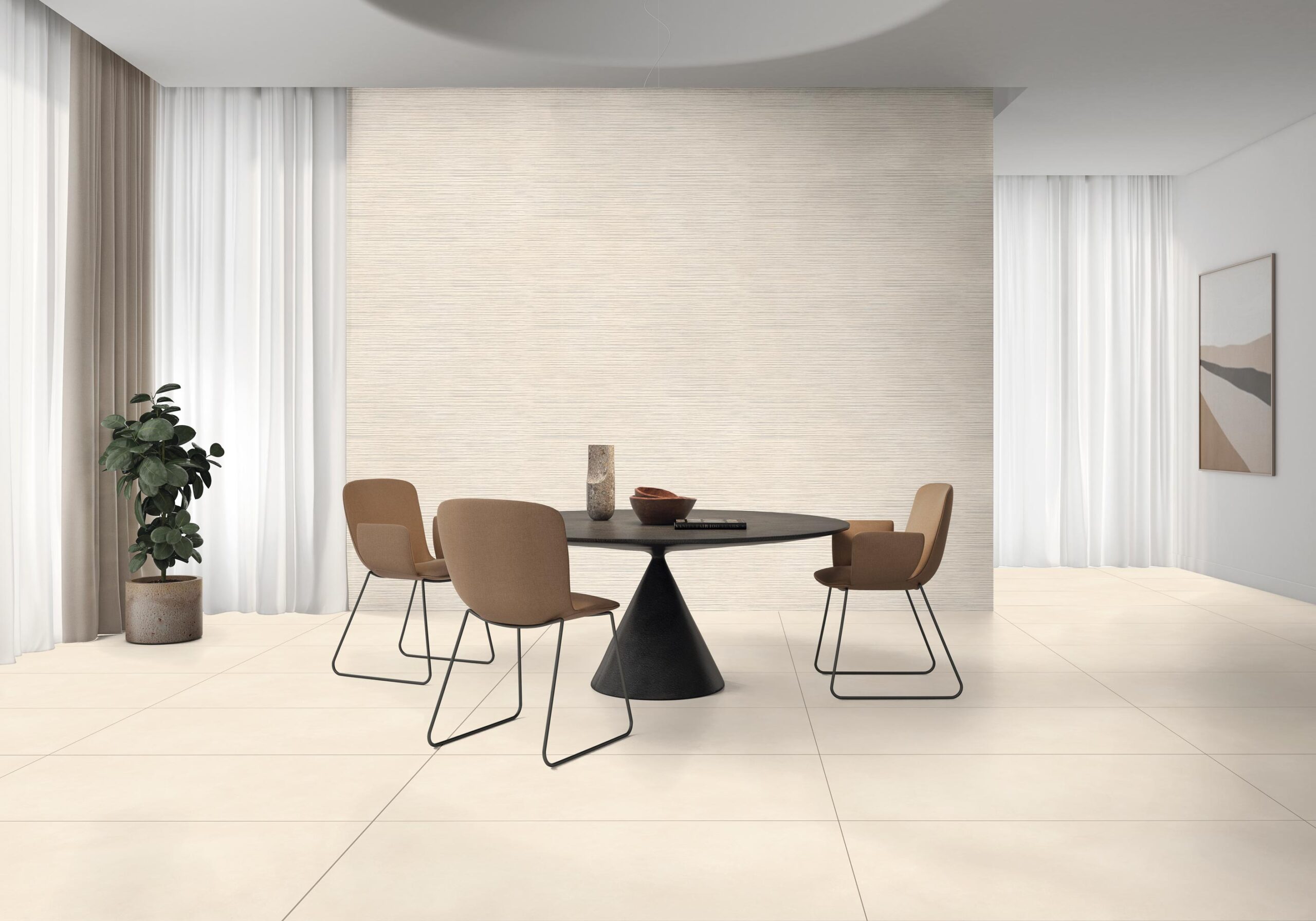 Create an impression with commercial tiles featuring bold tones and a high-gloss finish that conveys creativity and professionalism..
